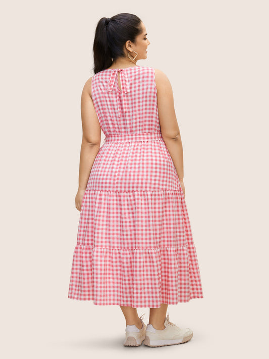 Gingham Elastic Waist Sleeveless Maxi Dress