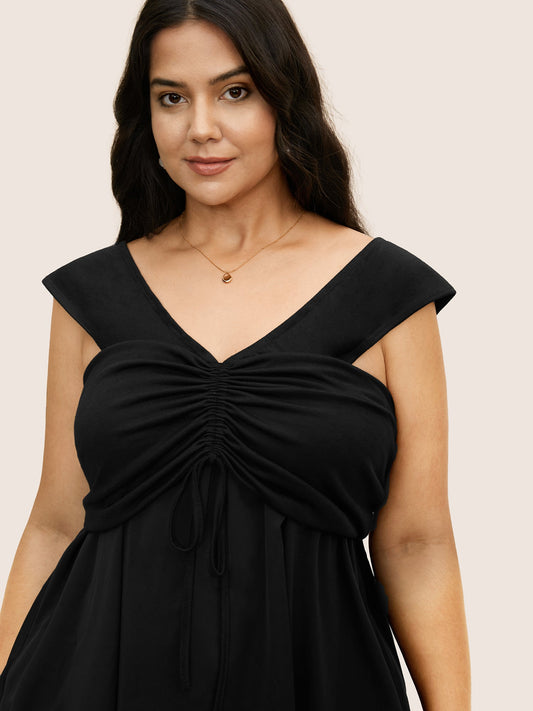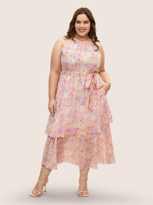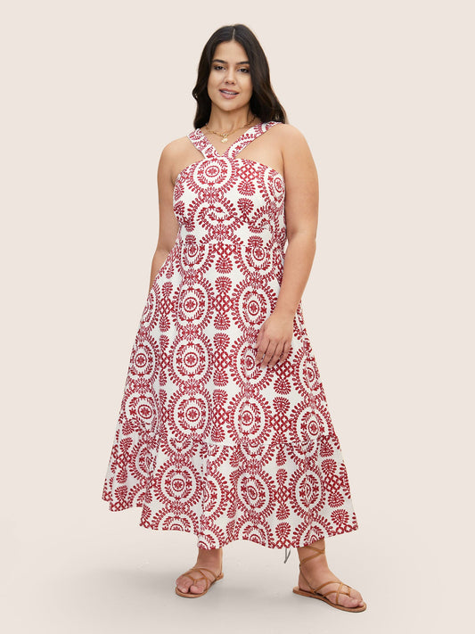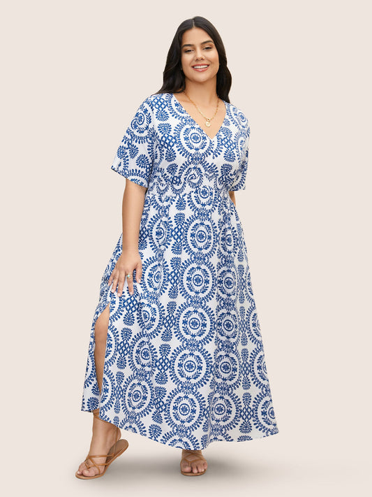 Surplice Neck Boho Print Ruffles Shirred Dress