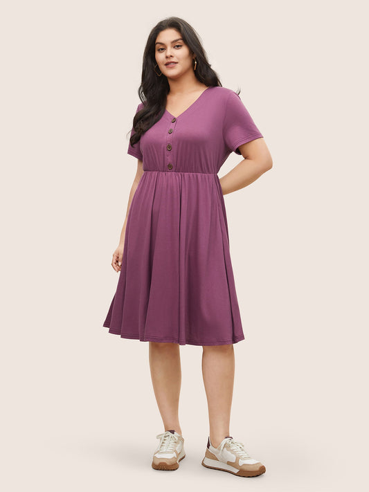 Supersoft Essentials Button Up Elastic Waist Gathered Dress