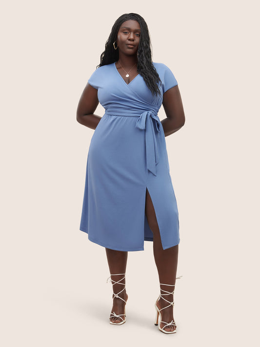 Solid Ties Wrap Dolman Sleeve Split Side Dress