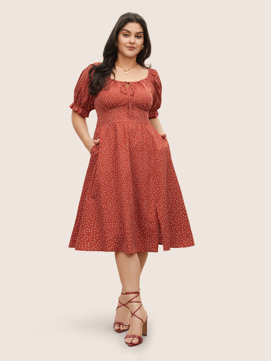 Polka Dot Ties Lantern Sleeve Gathered Dress