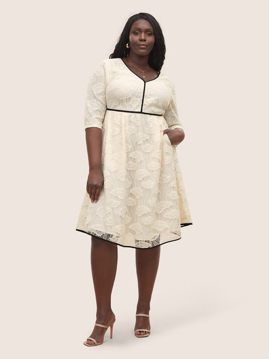 Hollow Out Belted Gathered Patchwork Hem Dress