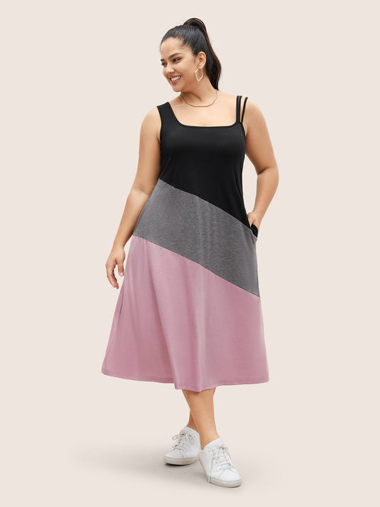 Geometric Patchwork Cut Out Adjustable Straps Dress
