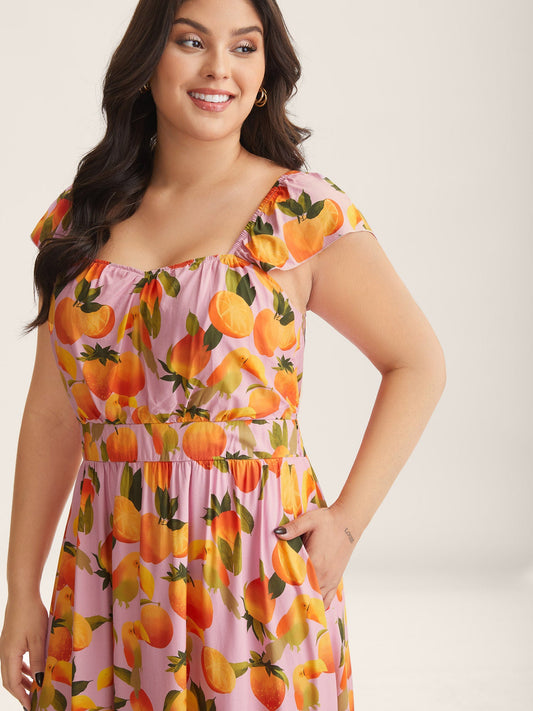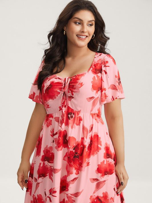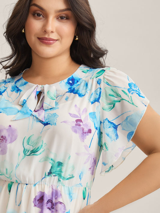 Breezy Floral Stretchy Waist Sheer Midi Dress