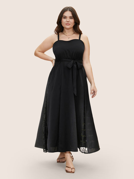 Heart Neckline Solid Lace Patchwork Maxi Dress