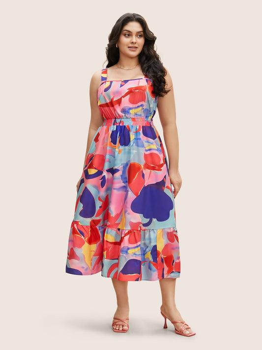 Chiffon Floral Tiered Ruffles Split Hem Dress