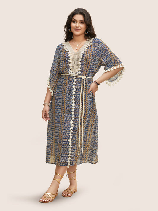 Tie Dye Woven Ribbon Split Hem Maxi Dress