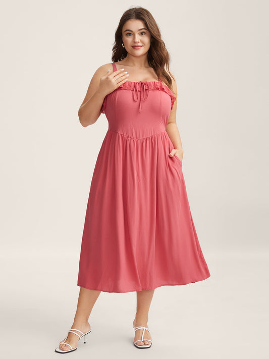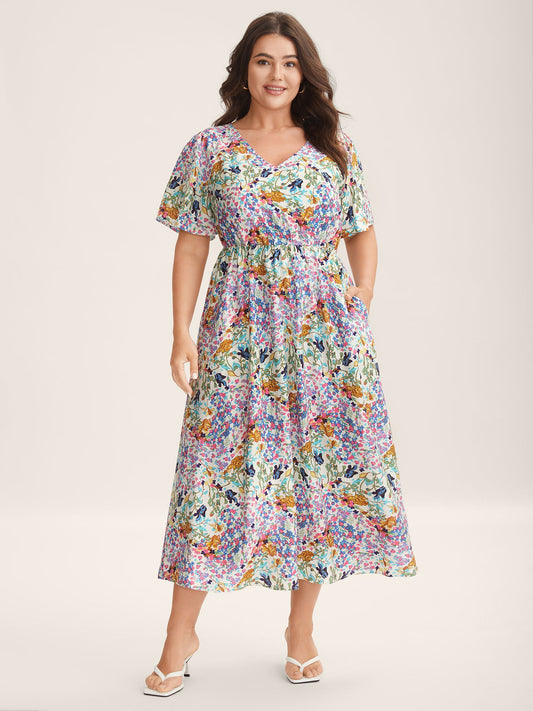 Fun Floral Print Ruffled Sleeve Midi Dress