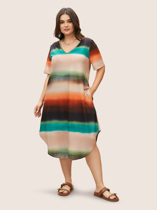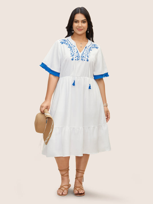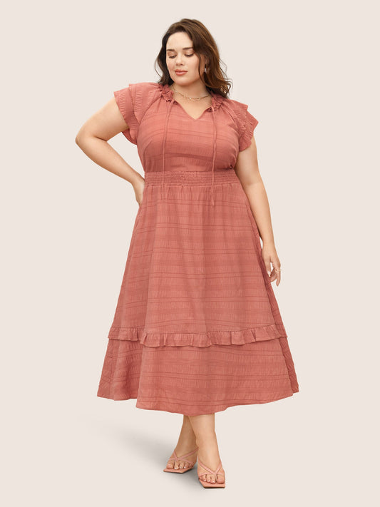 Texture Tiered Ruffles Shirred Tie Knot Dress