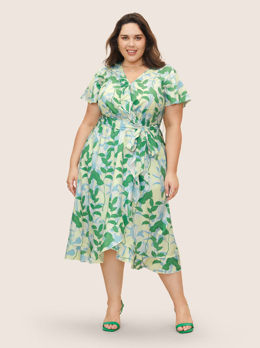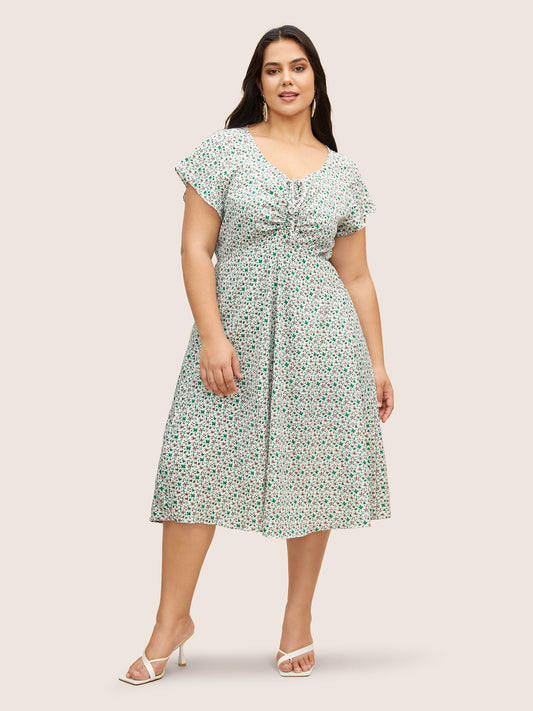 Ditsy Floral Drawstring Ruffle Cap Sleeve Dress