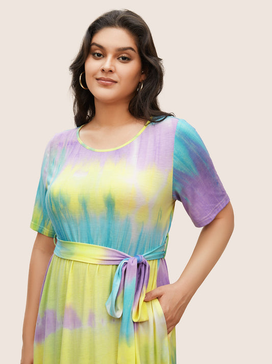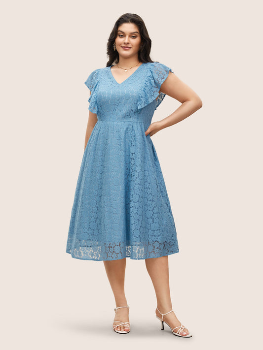 Plain Lace Panel Ruffle Cap Sleeve Dress