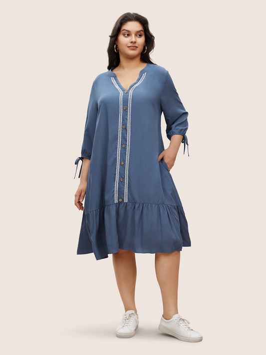 Patchwork Woven Ribbon Button Detail Dress