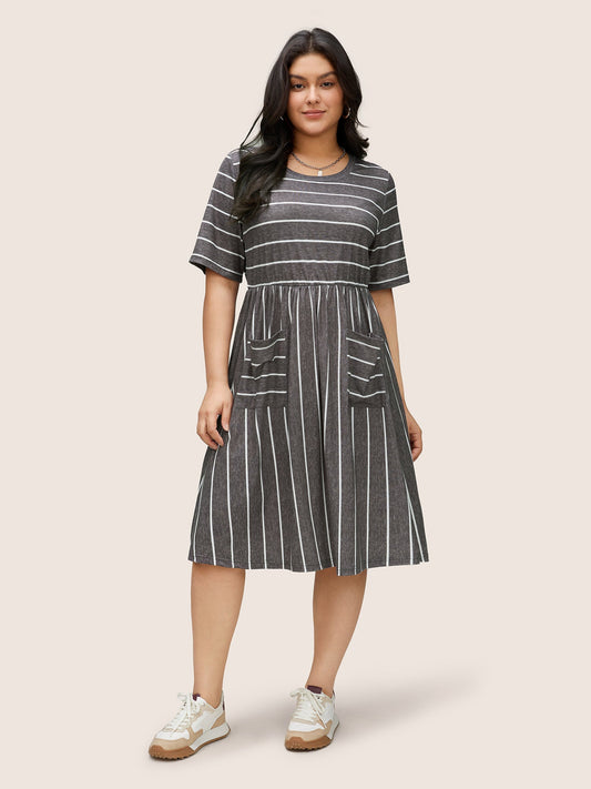 Tie Dye Elastic Waist Patchwork Metal Detail Dress