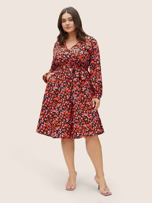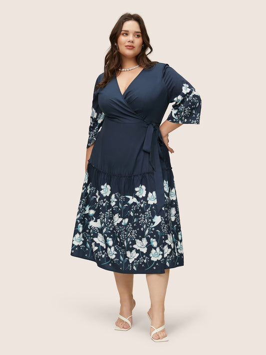 Floral Wrap Pleated Elastic Waist Ruched Dress
