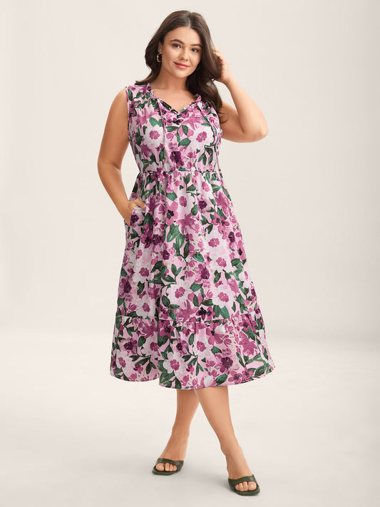 Dreamy Floral Rayon Neck Tie Midi Dress