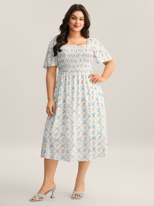 Floral Print Sweetheart Neck Pockets Midi Dress