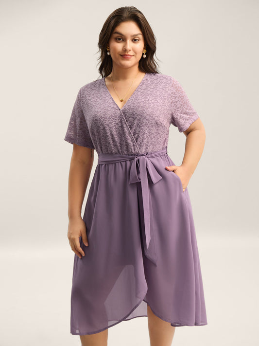 Lace Sheer Stretchy Waist Tie Midi Dress