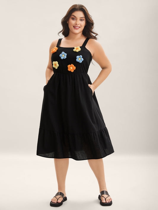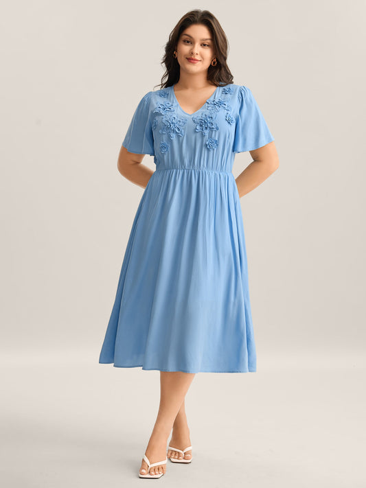 Rayon Crochet Floral Stretchy Waist Midi Dress