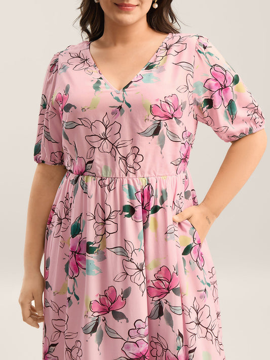 Blushing Petals Pockets Cinched-Waist Midi Dress