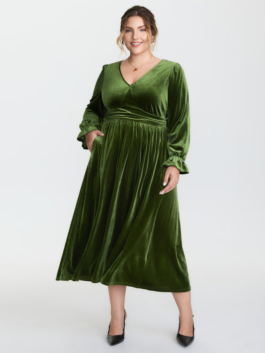 Velvet Triangular Shirred Waist Maxi Dress