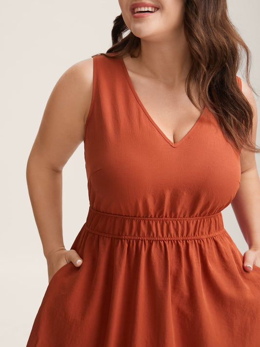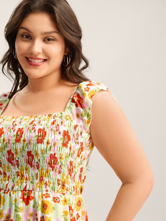 Floral Garden Stretchy Waist Shirred Midi Dress