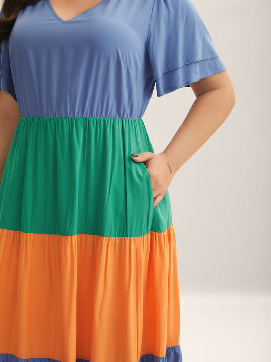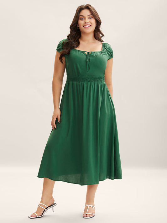 Rosy Garden Shirred Waist Pockets Midi Dress