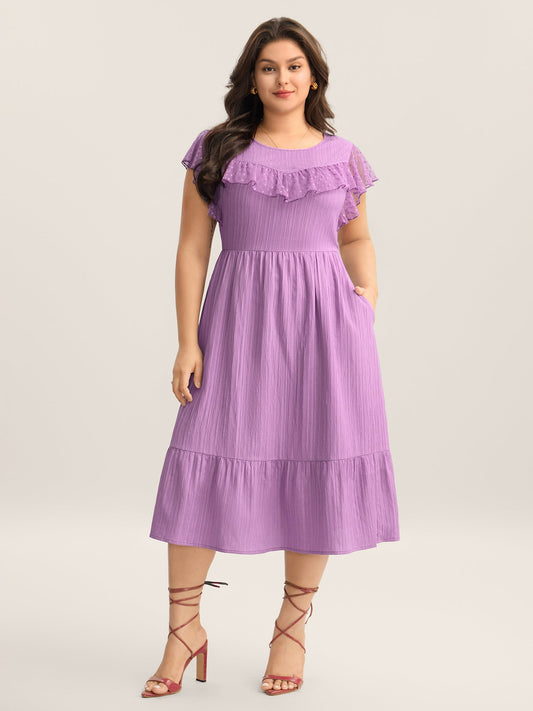 Rayon Colorful Tassels Stretchy Waist Midi Dress