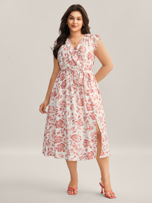 Rayon Boho Print Asymmetrical Waist Midi Dress