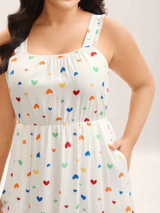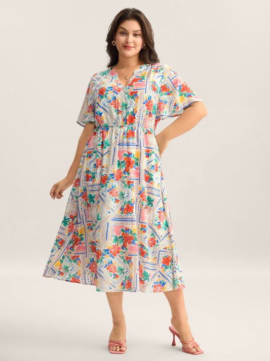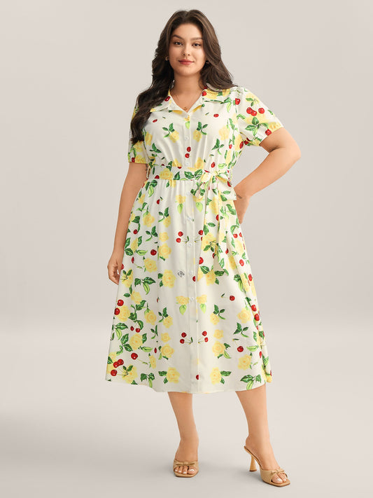 Rosy Cherry Print Stretchy Waist Shirt Dress