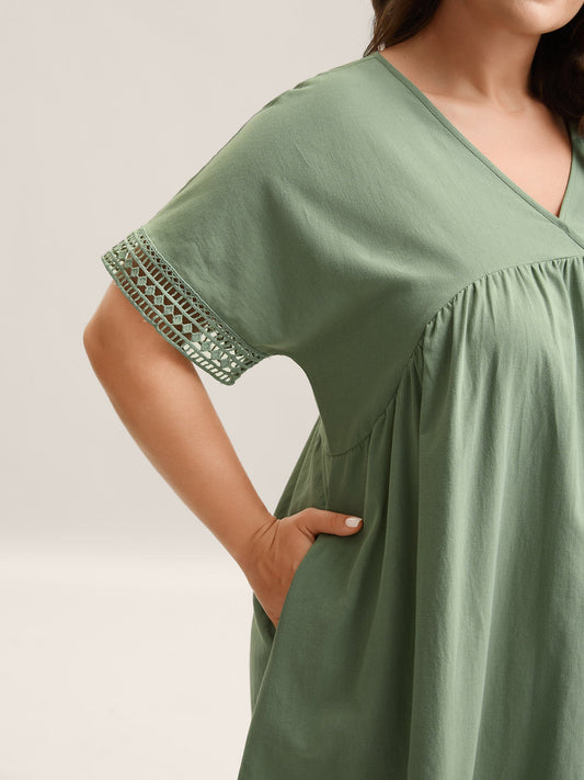 Pure Cotton Lace Trim Sleeve Midi Dress