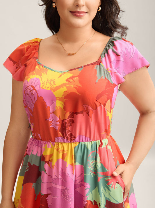 Zipper Stretchy Cinched-Waist Pockets Midi Dress