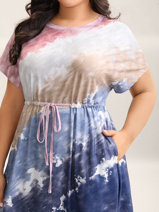Stretchy Flutter Sleeve Pleated Midi Dress