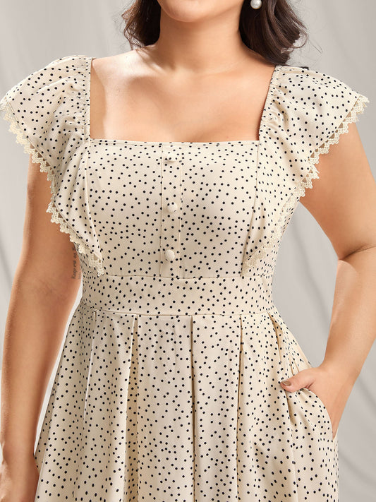 Polka Dot Cinched-Waist Pockets Midi Dress