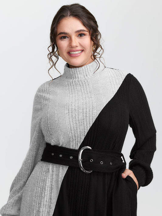 Yarn-Dyed Flared Sleeve A-Line Knee-Length Dress