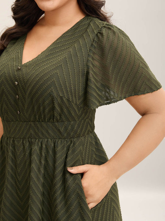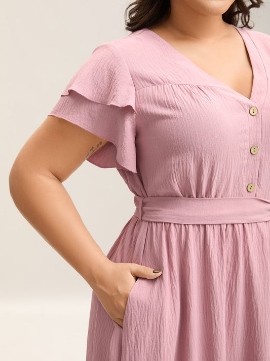 Layered Ruffled Sleeve Fake Placket Midi Dress