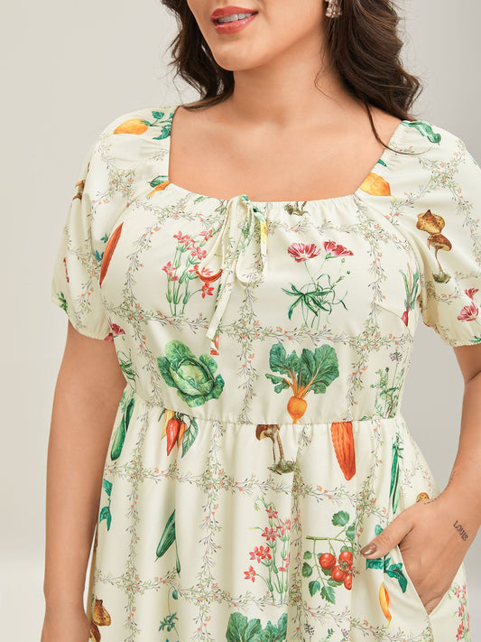 Ruffled Lace Trim Pockets Plain Midi Dress