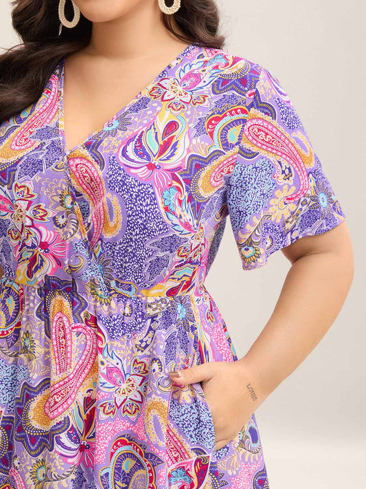 Sweet Paisley Print Pockets Stretchy Midi Dress