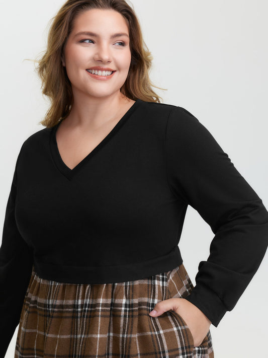 Plaid Color Contrast Stretchy Knee-Length Dress