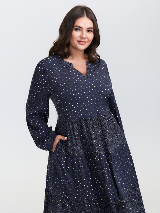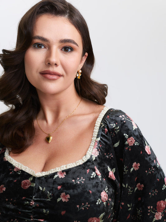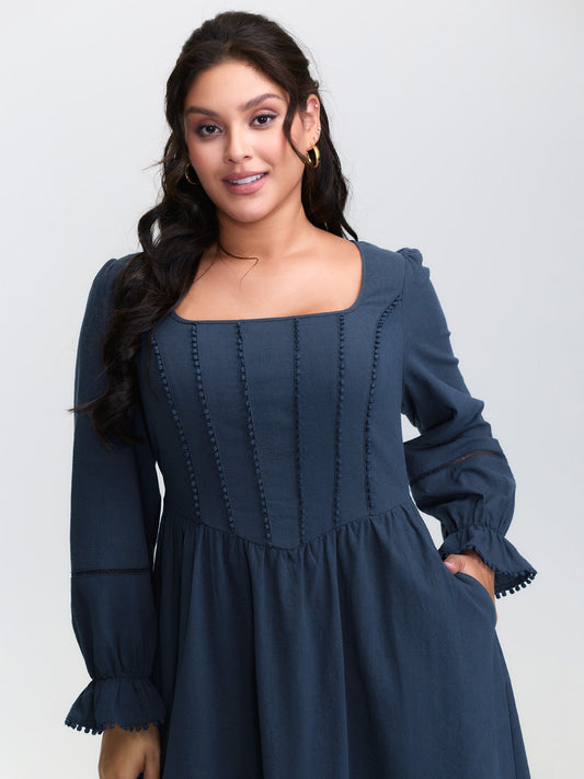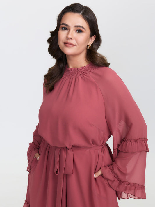 Sheer Ruffled Gathered Neck Belted Midi Dress