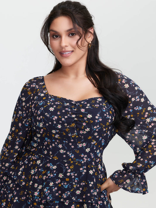 Chiffon Floral Sweetheart Neckline Mini Dress