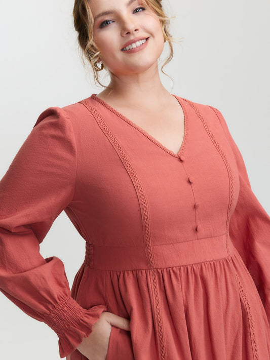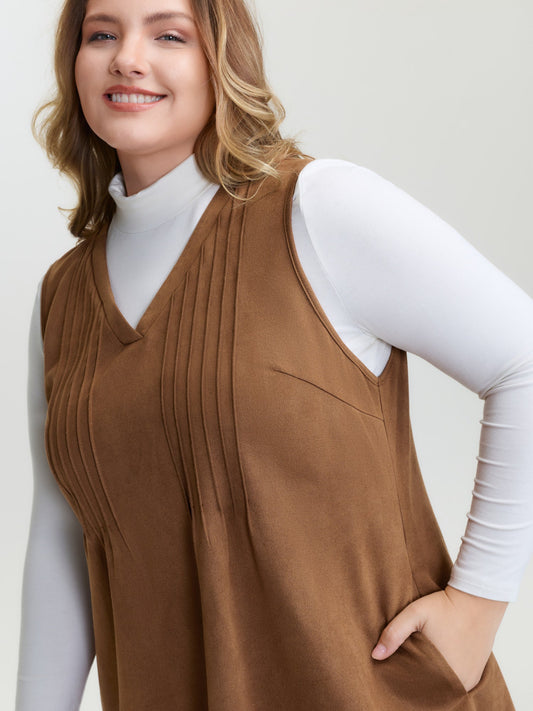 Denim-Like Pleated Cut-Out Neck Maxi Dress