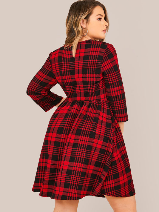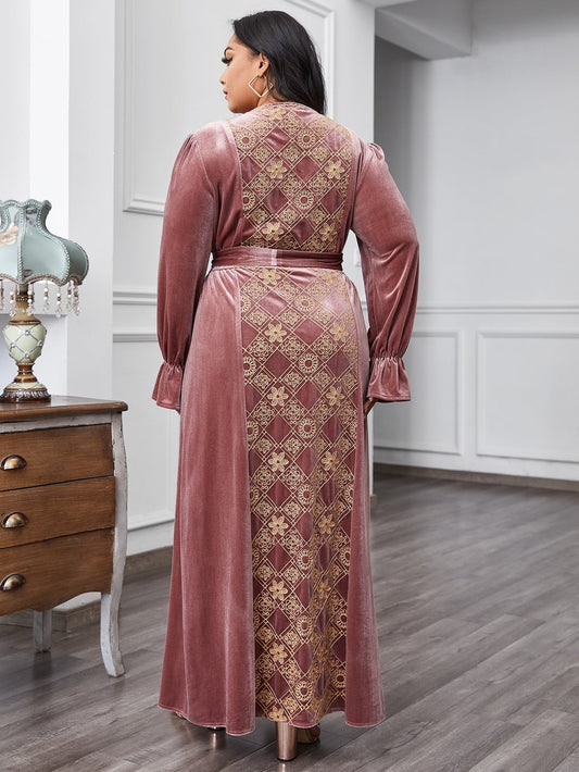 Floral & Argyle Embroidered Belt Velvet A-line Dress