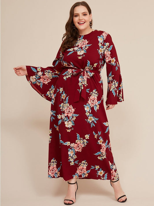 Floral Printed Flared Sleeves Dress