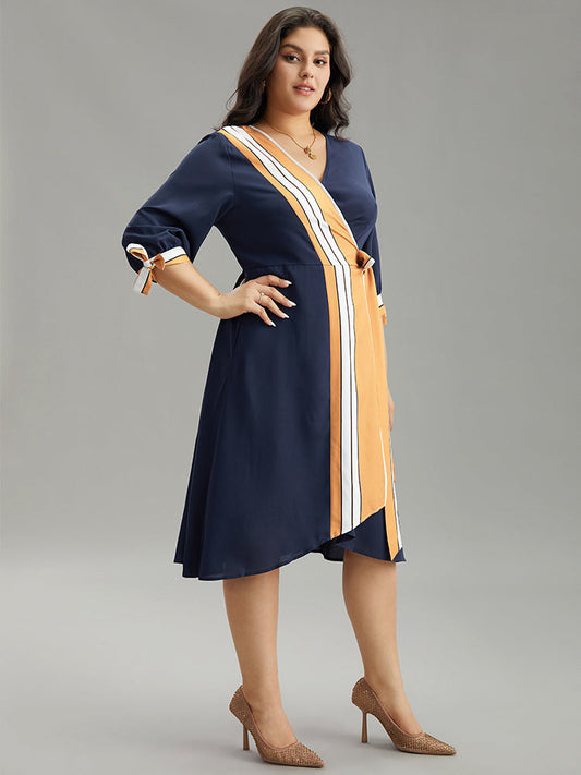 Ditsy Floral Bowknot Ruffles V Neck Knee Dress