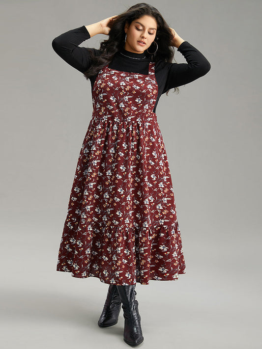 Floral Print Adjustable Straps Elastic Waist Cami Dress