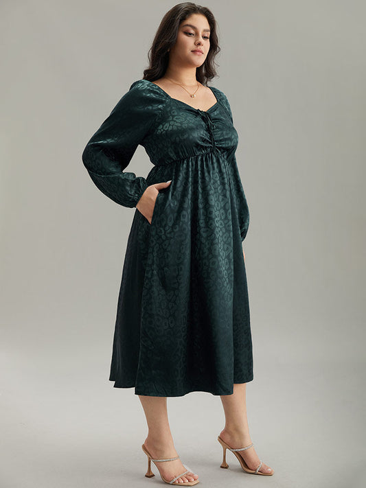 Solid Waffle Knit Pocket Lantern Sleeve Dress