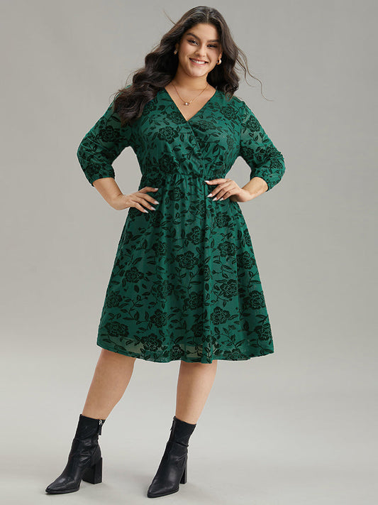Silhouette Floral Print Surplice Neck Gathered Dress