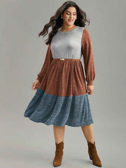 Plaid Patchwork Elastic Waist Lapel Collar Dress