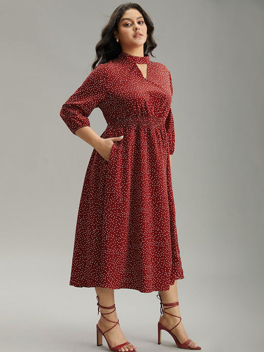 Polka Dot Keyhole Pocket Mock Neck Dress