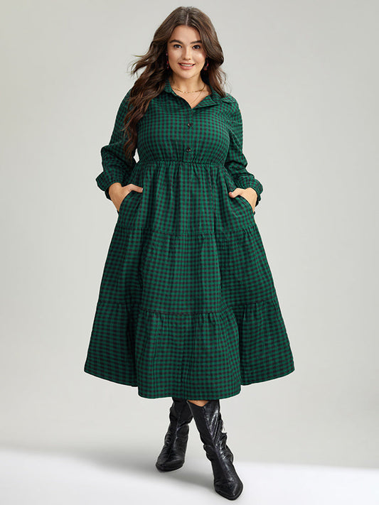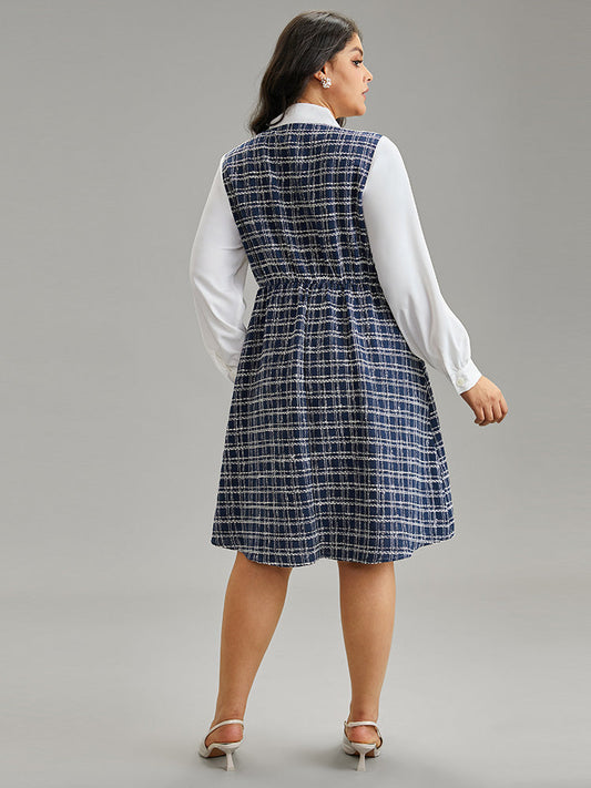 Plaid Patchwork Pocket Button Detail Ties Dress
